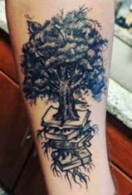 手部树木纹身 男生手臂上书籍和大树纹身图片
