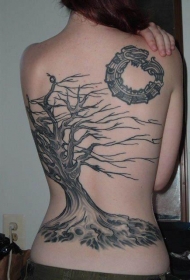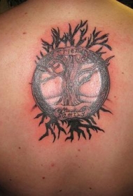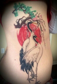 肩部美丽的五彩漂亮鸟和月亮树纹身图案