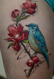 惊人的美丽彩绘小鸟与花朵纹身图案