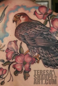 胸部天然彩色美丽的鹰与树枝纹身图案