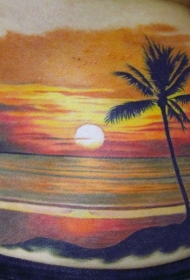 腰部非常美丽的海洋日落与棕榈树纹身图案