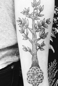 手臂纹身图片 男生手臂上黑色的松树纹身图片