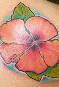 肩部彩色写实的水芙蓉纹身图案