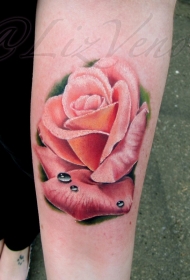 手臂彩色逼真的玫瑰花纹身图片