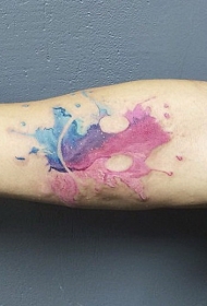 腿部水彩色个性纹身图案