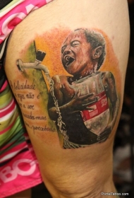腿部彩色的男孩与英文纹身图案