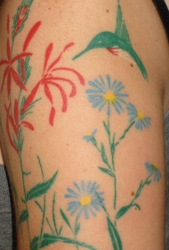 肩部水彩画风格的蜂鸟纹身图片