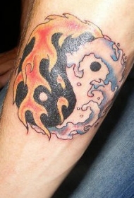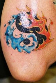 阴阳八卦水与火彩色纹身图案