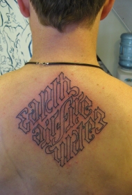 男性背部几何花体字线条个性纹身图案