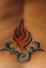腰部火焰与水的图腾纹身图案