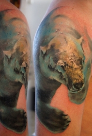 大臂美丽的水彩北极熊在水中纹身图案