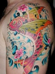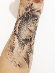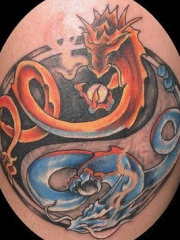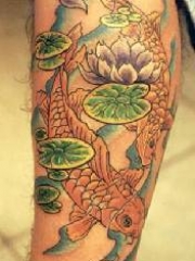 小腿上海水和恐龙耀西游戏人物纹身图片