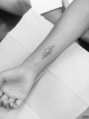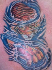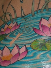 女孩侧肋上漂亮的水浪和莲花纹身图片