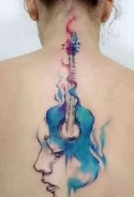 水彩吉他纹身 小清新水彩风格的吉他纹身图案