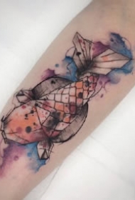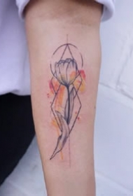 带几何元素的水彩小臂纹身作品