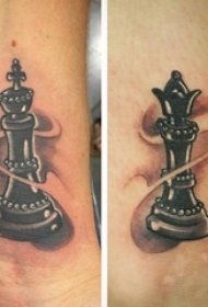 男生小腿上彩绘水彩素描创意棋子纹身图片