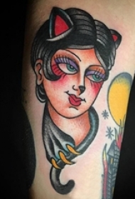 女生大腿上彩绘水彩素描创意霸气抽象狮子头纹身图片