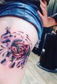 女生大腿上彩绘水彩素描创意文艺唯美花朵精致纹身图片