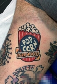 男生大腿上彩绘水彩创意可爱爆米花纹身图片