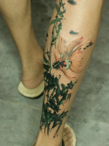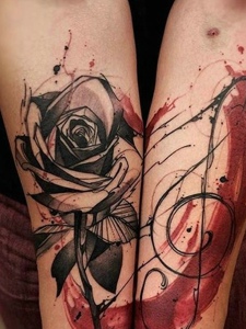 女性大腿上漂亮的线条轮廓水彩花卉纹身图片