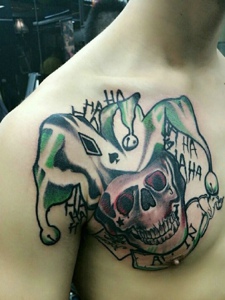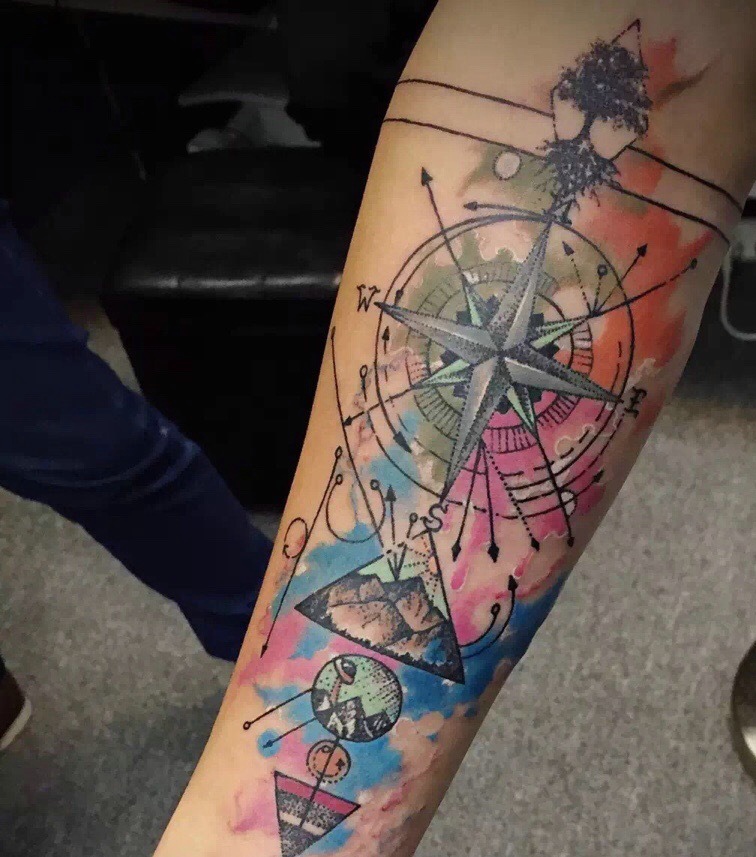 男子左侧腹部上的水彩灯泡里的灯塔纹身图片