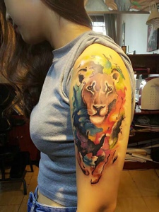 女性右侧肋上漂亮的水彩鸟纹身图片
