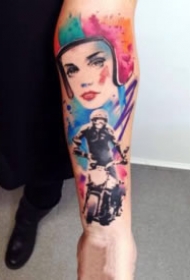 手臂上的抽象水彩人像纹身图案欣赏