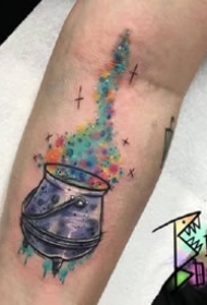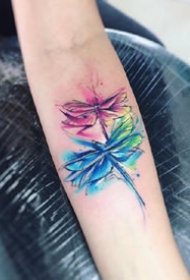 小手臂上很个性一组水彩纹身图片