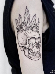 肩部彩色水晶骷髅与玫瑰纹身图片