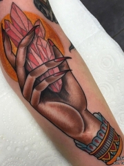 水晶石纹身男生手臂上彩色的水晶石纹身图片