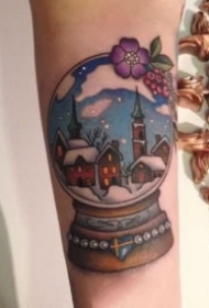 水晶纹身女生手臂上水晶和花朵纹身图片