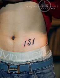 男生腹部日期数字纹身