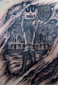 令人毛骨悚然的咧嘴猫撕皮纹身图案