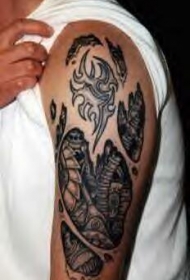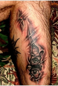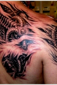 肋骨下皮肤撕裂骨骼和机制纹身图案