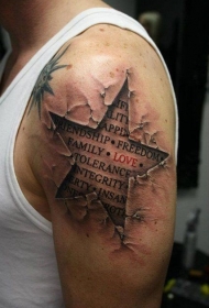 男性腰侧彩虹下皮肤撕裂纹身图案