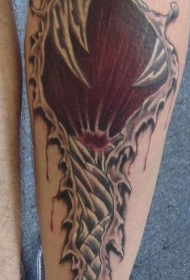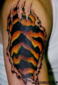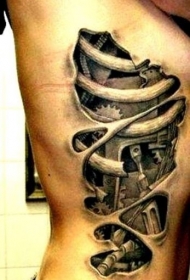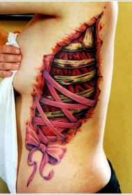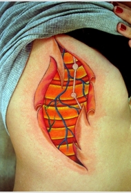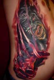 腰侧彩色写实肌肉皮肤撕裂纹身图案