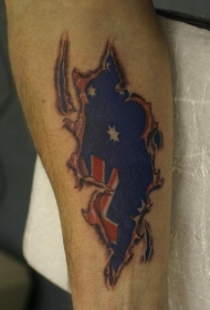 手臂澳大利亚国旗下的皮肤撕裂纹身