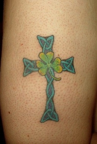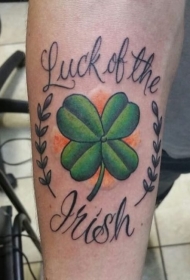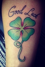 欧美拼接纹身 女生手臂上彩色的四叶草纹身图片