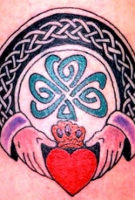 幸运的彩绘几何心形小清新植物四叶草纹身图案