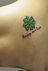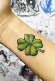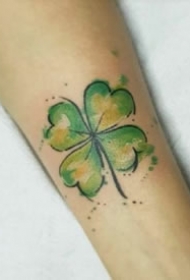 能带来幸运的彩绘小清新植物四叶草纹身图案