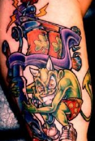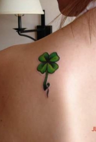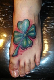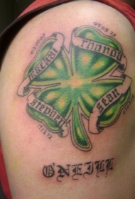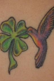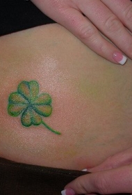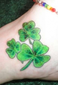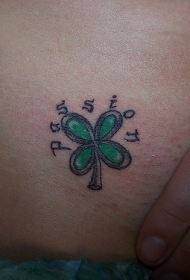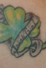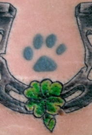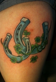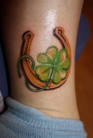 漂亮的绿色四叶草和马蹄铁纹身图案