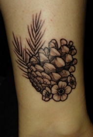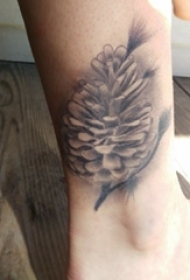 植物纹身 男生脚踝上黑色的松果纹身图片