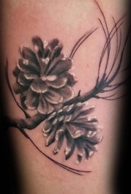 手臂纹身素材 女生手臂上松果和花朵纹身图片