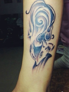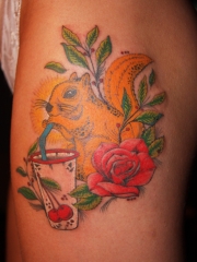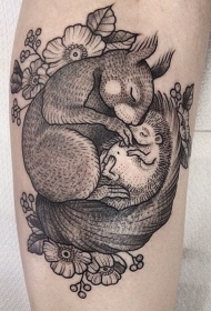 手臂上黑灰色素描纹身小花朵和老鼠纹身动物图片