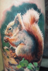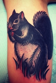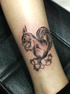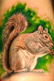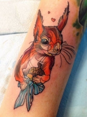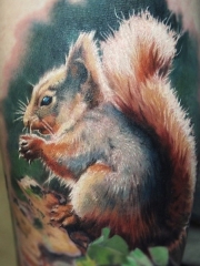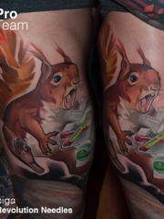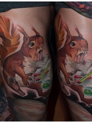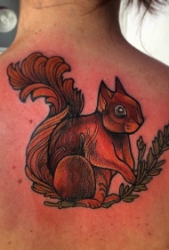 男性后肩背上可怕的松鼠吃骷髅头纹身图片