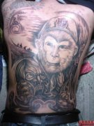 背部孙悟空纹身黑白图案