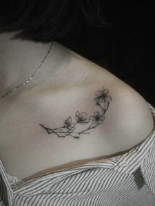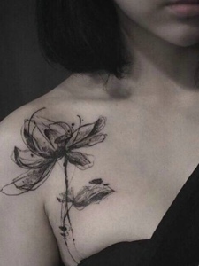 锁骨处美丽而骄傲的彼岸花纹身图案