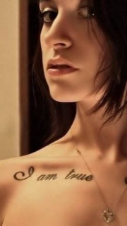 美女锁骨上简单漂亮的英文字纹身