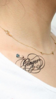 女孩锁骨花体英文钻石纹身图案
