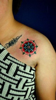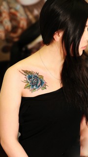 香肩花朵时尚刺青作品